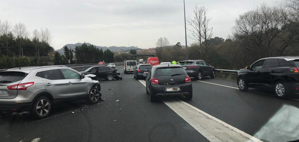 Hasta seis vehículos han colisionado minutos antes de las nueve de la mañana de este miércoles en la autovía A67 sentido Santander a su paso por la salida de Mogro-Puente Arce.