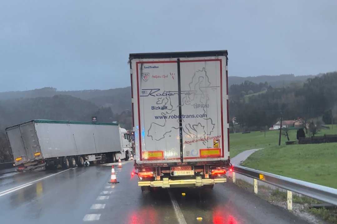 El accidente de un camión en la autovía A8 a su paso por Ambrosero en sentido Castro Urdiales provoca retenciones desde primera hora de la tarde, el conductor se encuentra en buen estado y no hay mas vehículos implicados.