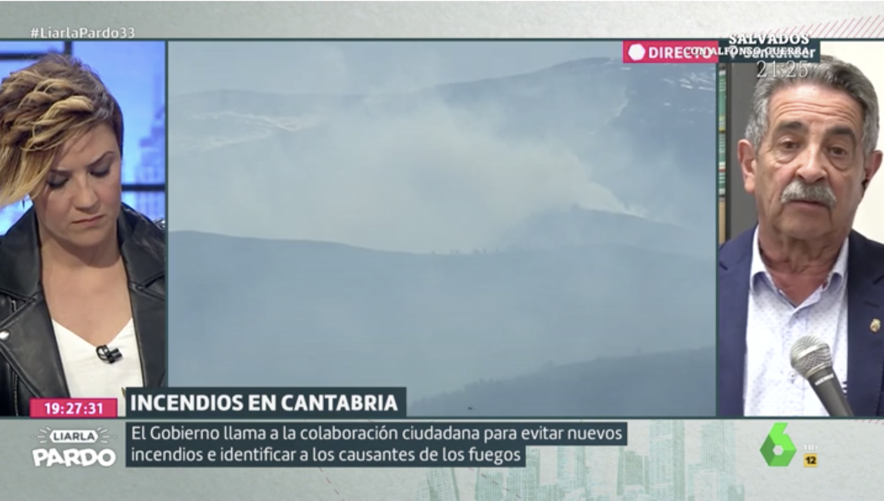 Revilla ha explicado en Liarla Pardo los nuevos métodos que utilizan los pirómanos para prender los montes cántabros: "Hay unas mechas que las enciendes y hacen fuego a la media hora. Las tiran y a la media hora están en el bar y es muy difícil localizarlos". También ha querido agradecer el trabajo de la UME: "Es lo mejor que tenemos en España".