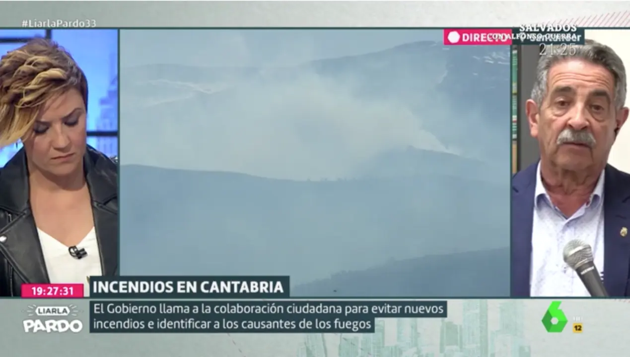 Revilla ha explicado en Liarla Pardo los nuevos métodos que utilizan los pirómanos para prender los montes cántabros: "Hay unas mechas que las enciendes y hacen fuego a la media hora. Las tiran y a la media hora están en el bar y es muy difícil localizarlos". También ha querido agradecer el trabajo de la UME: "Es lo mejor que tenemos en España".