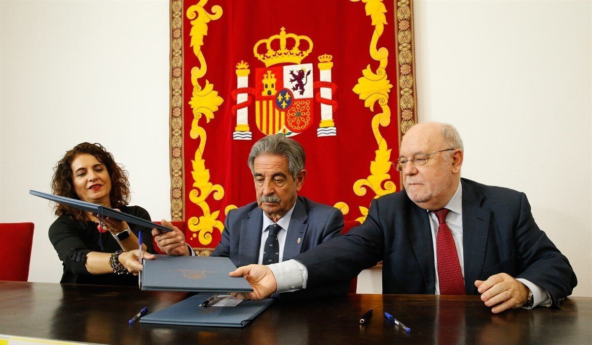 La ministra ha firmado el convenio con el consejero de Economía, el socialista Juan José Sota, acompañados por Revilla y el delegado del Gobierno (y candidato autonómico del PSOE), Pablo Zuloaga, que ha actuado como anfitrión en un acto al que han asistido también la consejera de Sanidad, Luisa Real, y el director de Valdecilla, entre otros cargos.