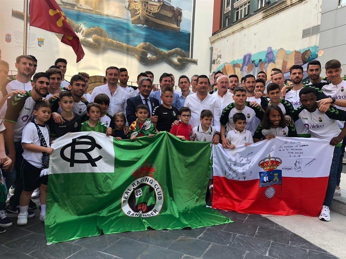 El presidente de Cantabria, Miguel Ángel Revilla, ha recibido este lunes a los jugadores, cuerpo técnico y directiva del Racing de Santander, "el equipo de su vida", para darle la "enhorabuena" por el ascenso a la Liga 123 del club verdiblanco, el cual ha dicho, "tiene que volver a Primera (división)".