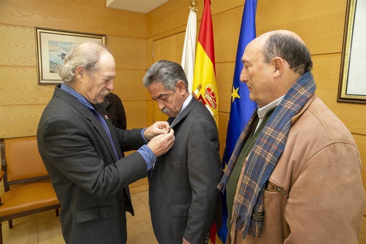 El presidente de Cantabria, Miguel Ángel Revilla, ha recibido hoy la insignia y el acta de ingreso en la Sociedad Cántabra de Escritores de manos del presidente de la institución, Isidro Cicero.