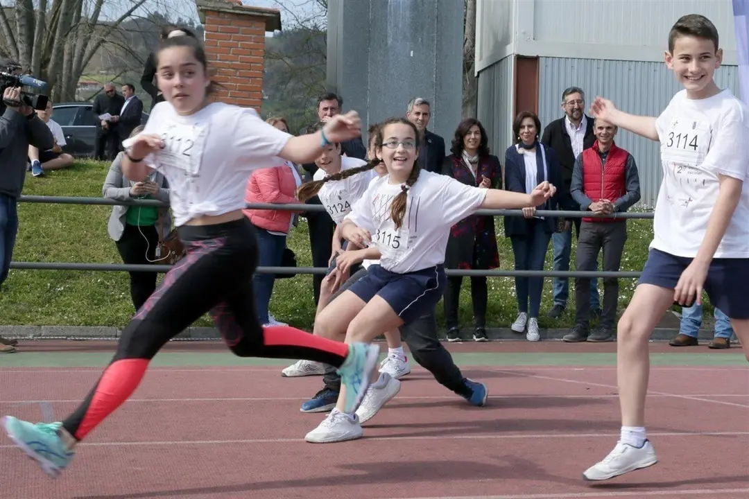 Posteriormente, y acompañados por la directora general de Deporte, Gloria Gómez, el delegado del Gobierno, Pablo Zuloaga, y la alcaldesa de Los Corrales de Buelna, Josefina González, han asistido a la carrera de 400 metros, que cierra una intensa jornada donde los niños y niñas han competido también en la prueba de 100 metros, relevo 4 por 100, salto de longitud y lanzamiento de peso. Al finalizar, han entregado las medallas a los ganadores.