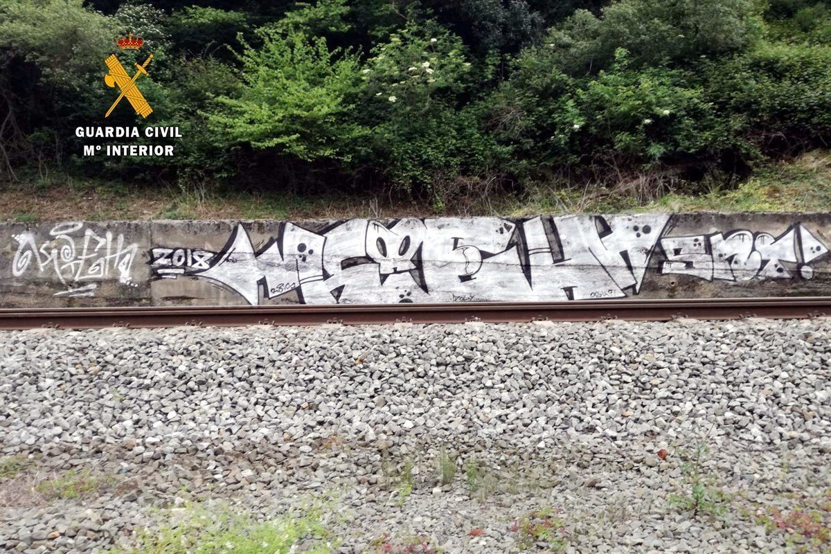 La Guardia Civil sorprendió la semana pasada a seis jóvenes, uno de ellos menor, realizando pintadas en la zona de seguridad de la vía de Renfe entre Somahoz y las Fraguas, lo que obligó a cortar el tráfico ferroviario ante el riesgo peligro que suponía para ellos mismos y la circulación de trenes.