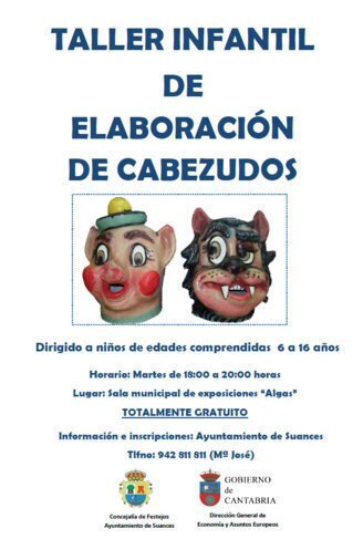 El Ayuntamiento de Suances, a través de la concejalía de Festejos que preside José Luis Plaza, ha abierto el plazo de inscripción para participar en un nuevo taller de elaboración de cabezudos. Una iniciativa que en esta ocasión va dirigida a un público infantil y juvenil, en concreto chavales de entre 6 y 16 años de edad. Las clases, impartidas por el reconocido artista Fran Querol, se desarrollarán todos los martes, en horario de 18.00 a 20.00 horas, en la Sala municipal Algas. Cabe señalar que la actividad es totalmente gratuita para los participantes, aunque existe límite de plazas. Las personas interesadas en recibir más información o formalizar la inscripción, pueden dirigirse al Ayuntamiento de Suances (concejalía de Festejos o departamento de Medio Ambiente). José Luis Plaza ha recordado que en la actualidad se está llevando a cabo un taller de cabezudos similar, pero en el que participan adultos, que están elaborando cabezudos centrados en cuentos populares europeos. En esta línea, el Concejal ha detallado que, unido a este taller, desde la Biblioteca municipal se organizarán diferentes encuentros de lectura infantil, donde se procederá a la lectura de estos cuentos y relatos y se amenizará con la presencia del personaje principal (el cabezudo confeccionado en el taller). Asimismo, estas figuras serán utilizadas en pasacalles literarios que se organicen en el municipio en las festividades locales. De esta forma se pretende cumplir un doble objetivo. Por un lado, aprender la técnica de elaboración de los cabezudos; y, por otro, conocer la cultura de diferentes países europeos. Por todo ello, José Luis Plaza ha animado a los más pequeños a sumarse a esta iniciativa que combina diversión y entretenimiento con formación y cultura. Cabe recordar que esta actividad, puesta en marcha por el Ayuntamiento de Suances, cuenta con la colaboración de la Dirección General de Asuntos Europeos.