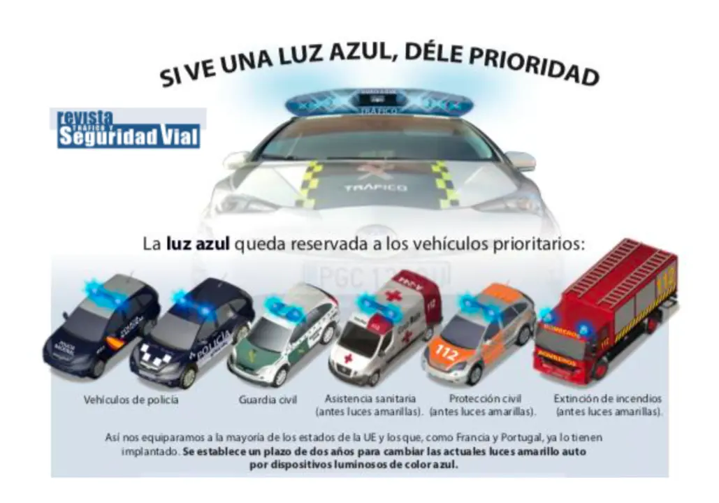 Hasta la publicación de esta reforma, el dispositivo luminoso de color azul estaba restringido al uso exclusivo de vehículos de policía y el de color amarillo auto para el resto de vehículos prioritarios: de extinción de incendios, protección civil-salvamento y de asistencia sanitaria.