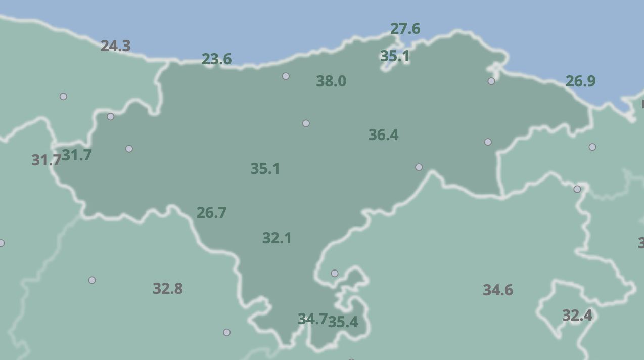 Torrelavega registra la temperatura más alta a las 14:00h con 38 grados
