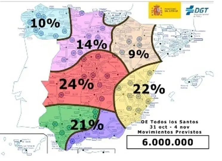 Así, la DGT ha puesto en marcha desde las 15.00 horas de este miércoles 31 de octubre hasta las 24.00 horas del domingo 4 de noviembre, un dispositivo especial para regular, vigilar y dar seguridad a estos desplazamientos durante el Puente de Todos los Santos, en el que es festivo nacional el jueves día 1.