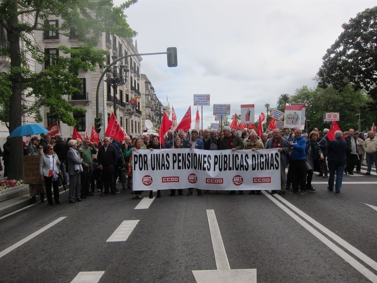 Los sindicatos UGT y Comisiones Obreras han vuelto a salir hoy a calle en toda España, también en Santander, para reclamar la revalorización de las pensiones y por tanto, el futuro de las mismas puesto que, según sus cálculos, la cuantía de éstas se reducirá un 40% en 2040.