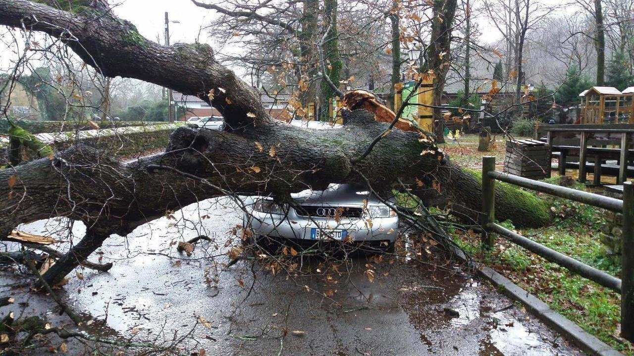 Un arból cae sobre un coche en Villacarriedo