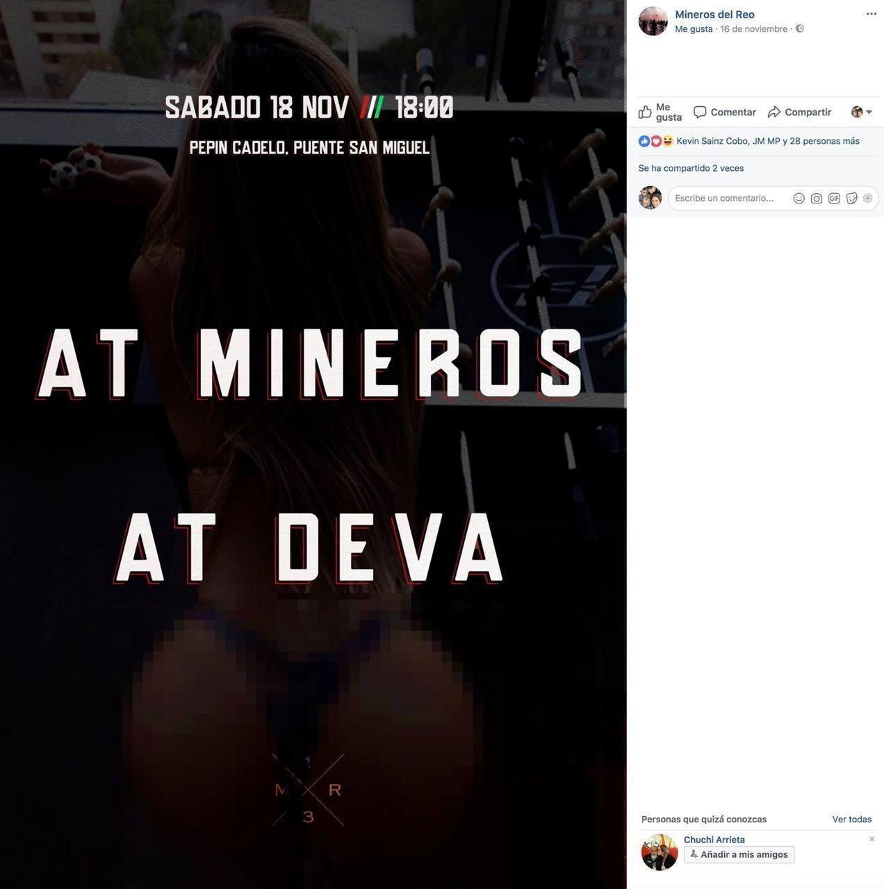 El anuncio del partido que enfrenta al At. Mineros frente al At. Deva de primera regional utiliza la imagen de una mujer desnuda.