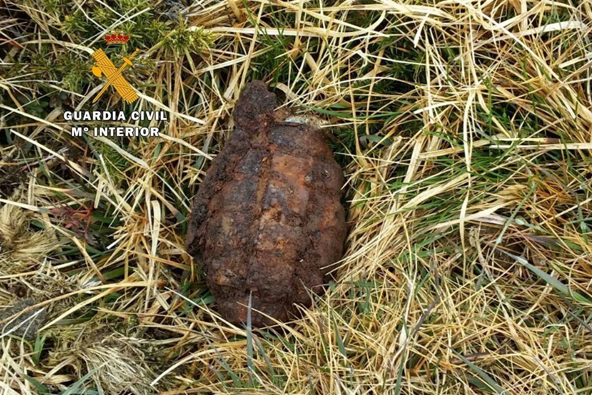 La Guardia Civil de Cantabria ha procedido a destruir de forma controlada una granada de mano tipo 'piña', procedente de la Guerra Civil española, que encontró de forma casual un senderista en la Matanela en la Sierra del Escudo. Aunque el artefactos e encontraba en mal estado, conservaba su poder destructivo.