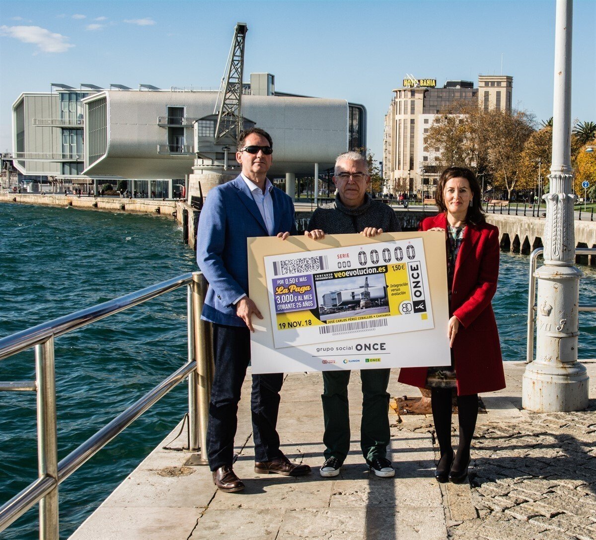 Una foto de la grúa de Piedra con el Centro Botín ilustrará el cupón de la ONCE del próximo lunes