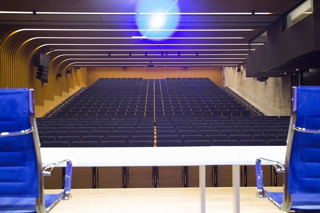 El arquitecto y responsable de la obra, Carlos Galiano, ha explicado que en el salón de actos se han combinado materiales absorbentes con otros que favorecen la reflexión para garantizar una acústica "excelente".