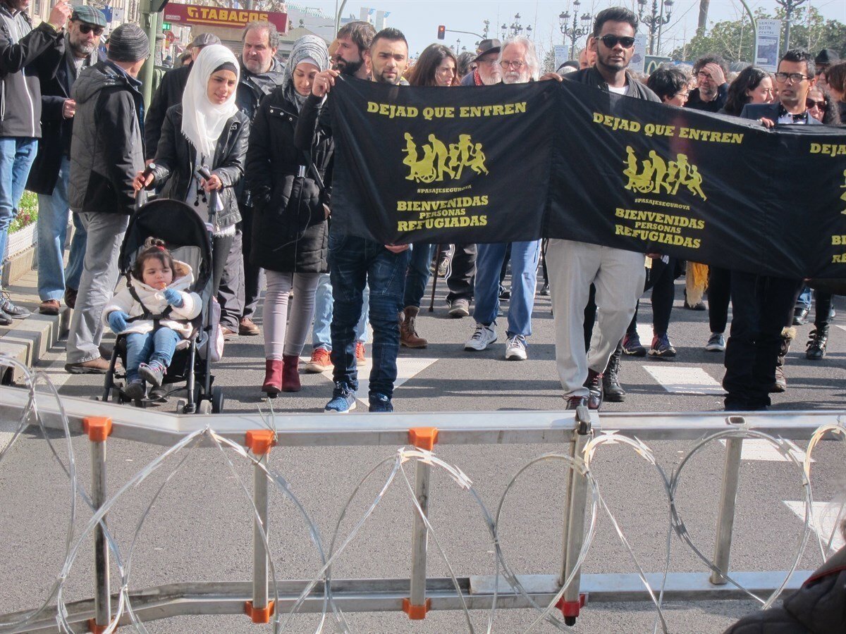 Tras la concentración, a las 12.30 horas ante la sede de la Delegación del Gobierno, han recorrido las calles hasta el Ayuntamiento, en una manifestación que ha discurrido bajo el lema 'No a la Europa fortaleza. Los derechos humanos no se negocian', y tras pancartas en las que podía leerse 'Dejad que entren' o 'Bienvenidas personas refugiadas'.