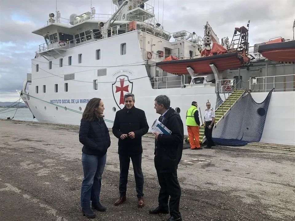 Durante la visita al barco medicalizado, el también secretario general del PSOE regional ha estado acompañado por el nuevo director del Instituto Social de la Marina en Cantabria, Alberto Villa Berasategui, y la directora del Puerto de Santander, Cristina López Arias.
