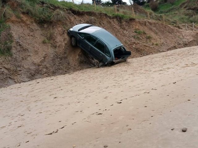 En la tarde de ayer, lunes día 3, un vehículo caía a la playa de Oyambre desde donde se encontraba aparcado y sin ocupantes en el interior, concretamente en la zona del Pájaro Amarillo.