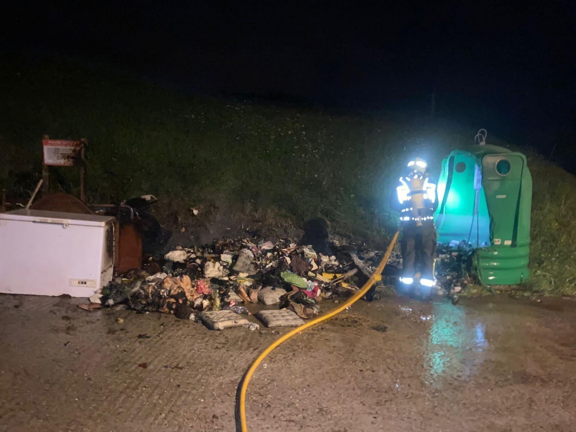 Según ha explicado, tras el aviso los bomberos acudieron al lugar de las llamas, donde lograron sofocar el incendio de varios contenedores y residuos textiles, de muebles y enseres.