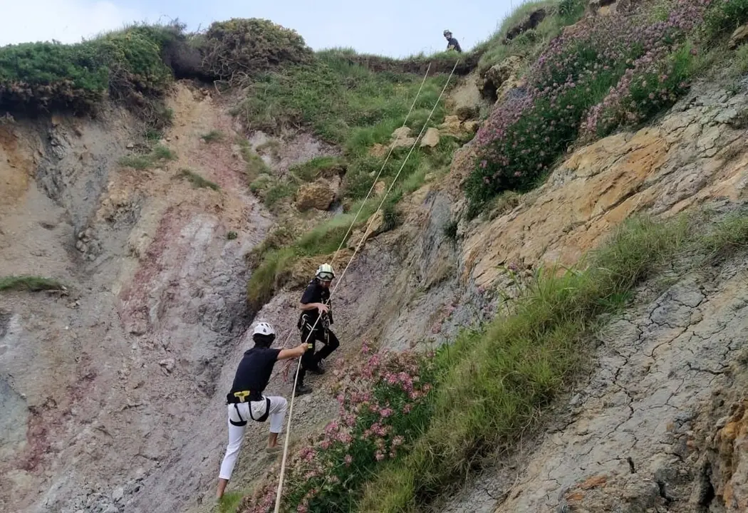 Según ha informado el Servicio de Emergencias 112, los efectivos del parque de bomberos de Valdáliga han montado un sistema de cuerdas para realizar el rescate con seguridad en el entorno del mirador de Remedio.