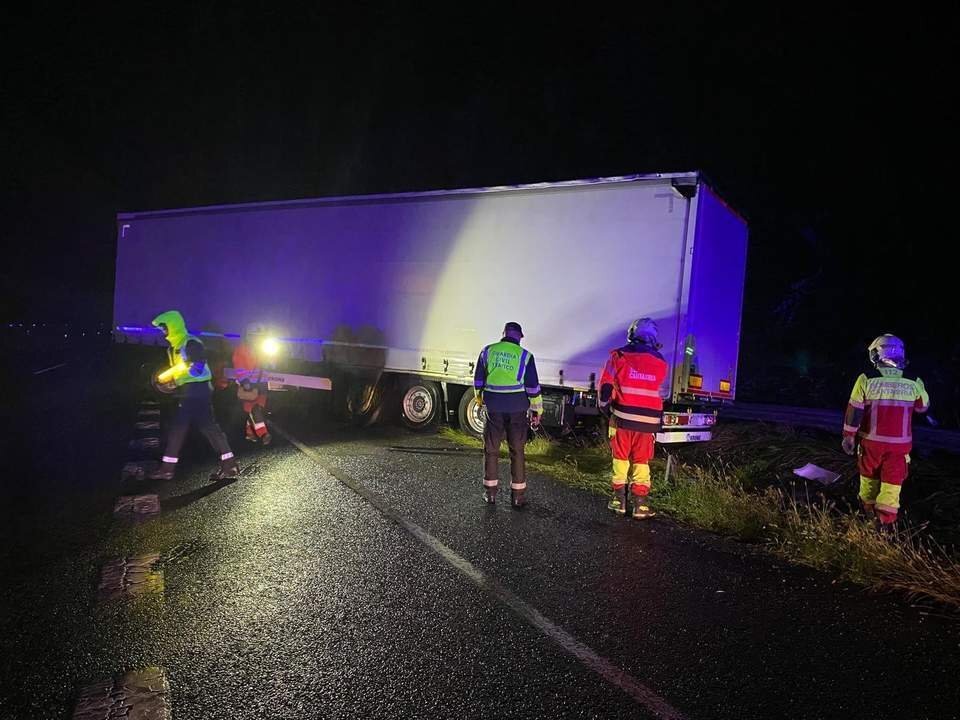 Un camión se sale de la A-8 a la altura del Valdáliga
