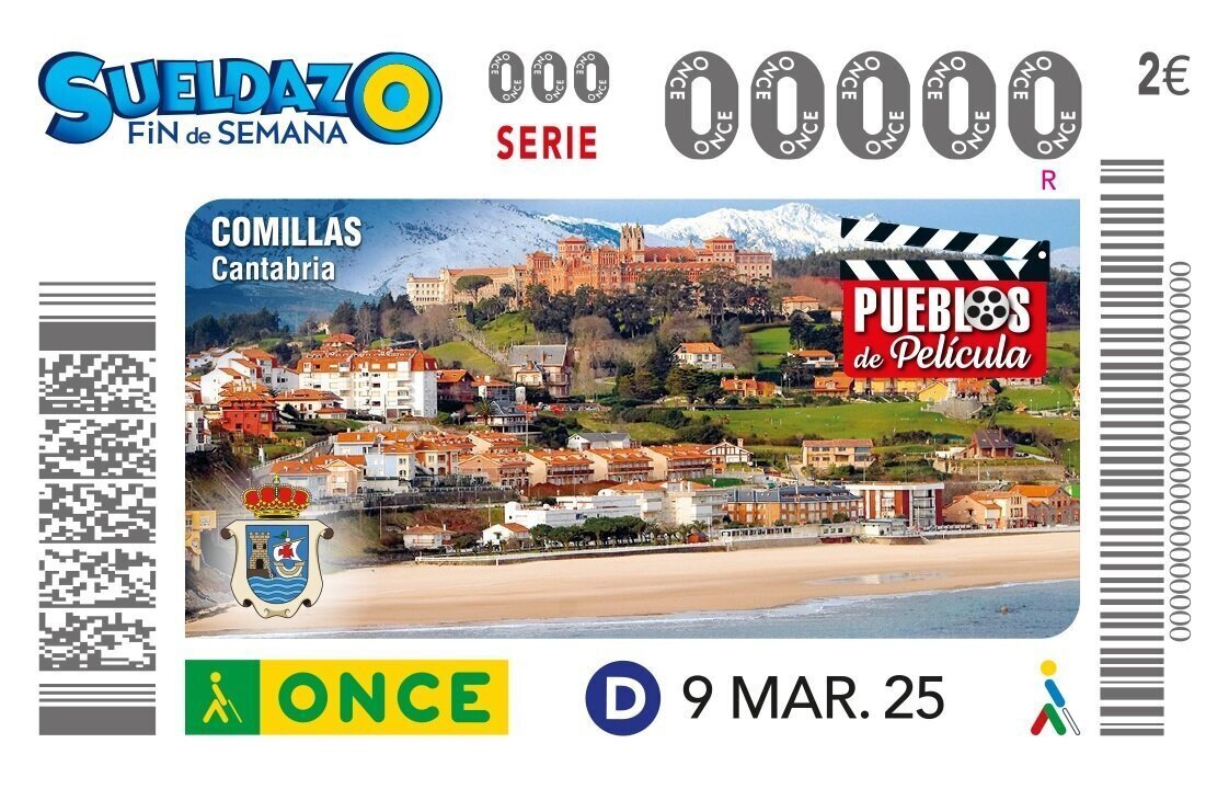 El municipio cántabro de Comillas, donde se rodó la película 'Primos', ilustrará el cupón de la ONCE del domingo 9 de marzo, dentro de la serie 'Pueblos de película' de la entidad.