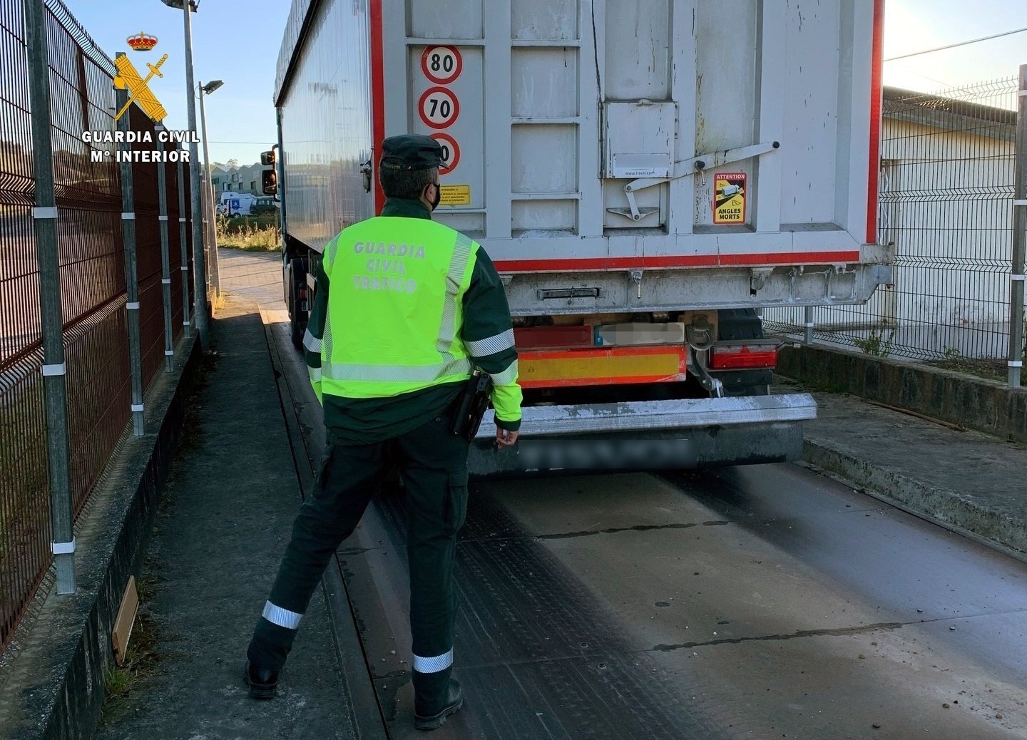 Al acercarse observaron en las ruedas y en la suspensión evidentes signos de un exceso de carga, por lo que fue trasladado a la báscula situada en Los Tánagos.