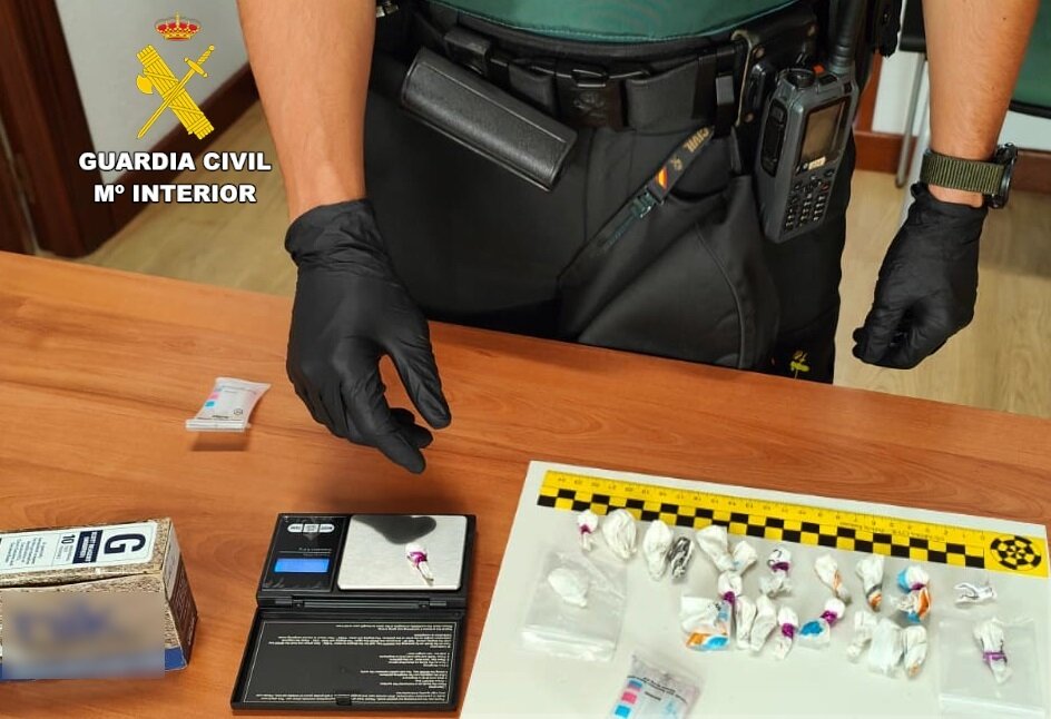 Estas actuaciones de la Guardia Civil se enmarcan dentro de la Operación Verano 2025 y el Plan Especial de actuación para el desarrollo de un ocio responsable y han permitido 'descubrir' a dos presuntos traficantes de droga al menudeo e intervenir 34 envoltorios con cocaína.