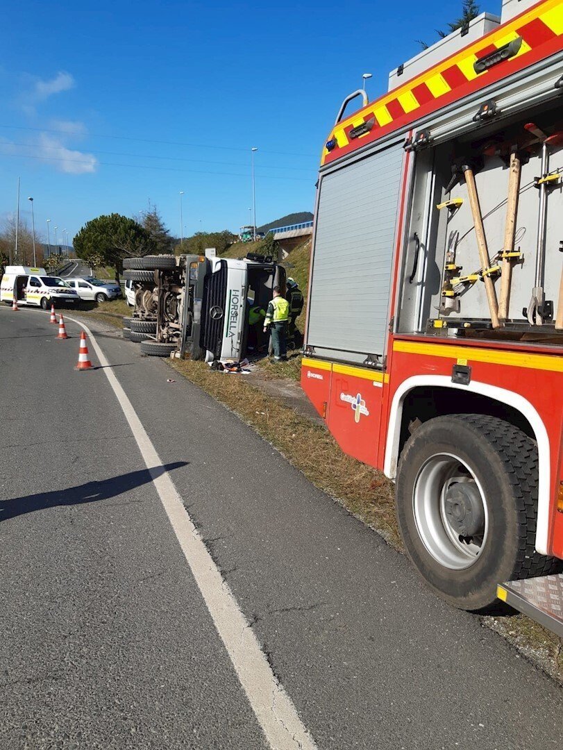 Un hombre de 58 años ha resultado herido este mediodía tras volcar la hormigonera que conducía en una incorporación desde Unquera (Val de San Vicente) a la A-8, sentido Santander.