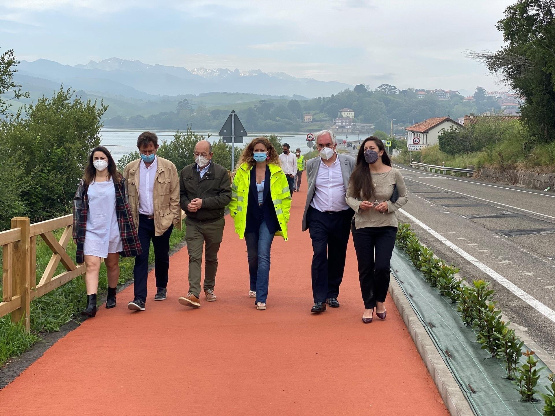 La delegada del Gobierno, Ainoa Quiñones; el alcalde de San Vicente de la Barquera, Dionisio Luguera, y el jefe de la Demarcación de Carreteras, Fernando Hernández, han visitado este miércoles una parte de esta senda peatonal, que discurre desde el final del Puente de la Maza hasta la intersección con la CA-131 en La Revilla y aprovecha tramos del trazado antiguo de la N-634 que lleva décadas en desuso.