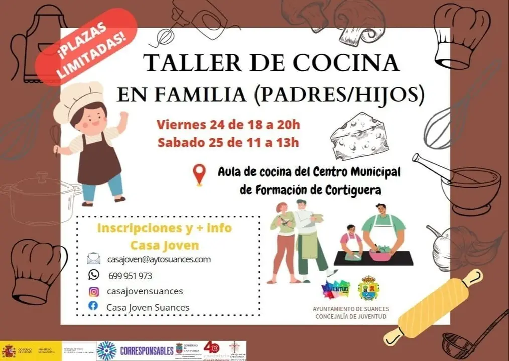 El Ayuntamiento de Suances, a través de la Concejalía de Juventud, ofrecerá este viernes, 24 de marzo, y mañana, día 25, un Taller de Cocina en familia (padres/hijos).