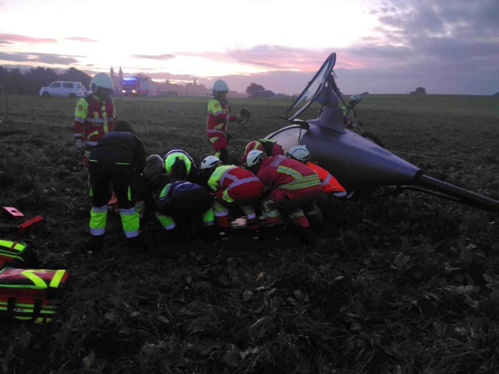 La aeronave contaba con dos ocupantes, y ambos han resultado heridos, aunque sin determinar el alcance o gravedad de las lesiones. La aeronave, de pequeño tamaño, volaba escasos metros de altura en el momento del accidente.