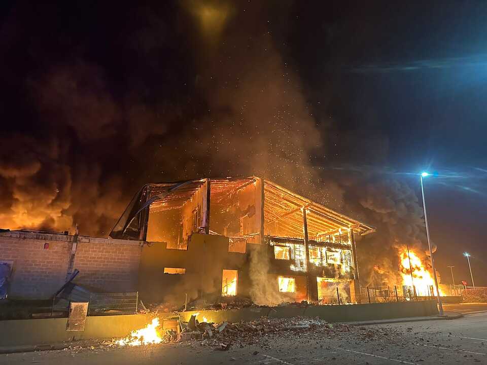 En fase de control un incendio que ha calcinado una nave industrial en los Tánagos
