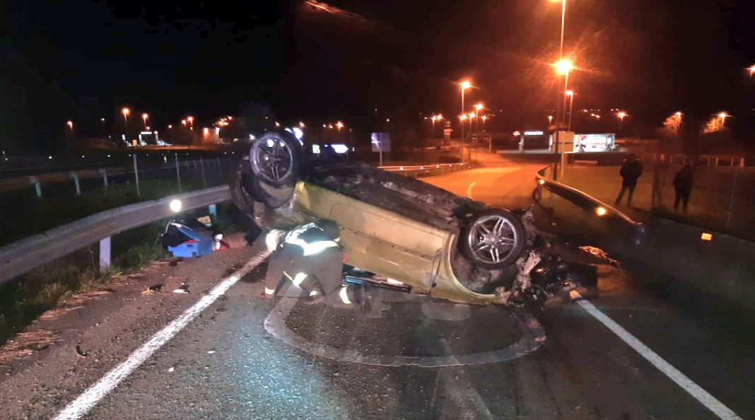 El conductor ha perdido el control del vehículo por causas que se desconocen y ha volcado quedando en el acceso a la gasolinera.