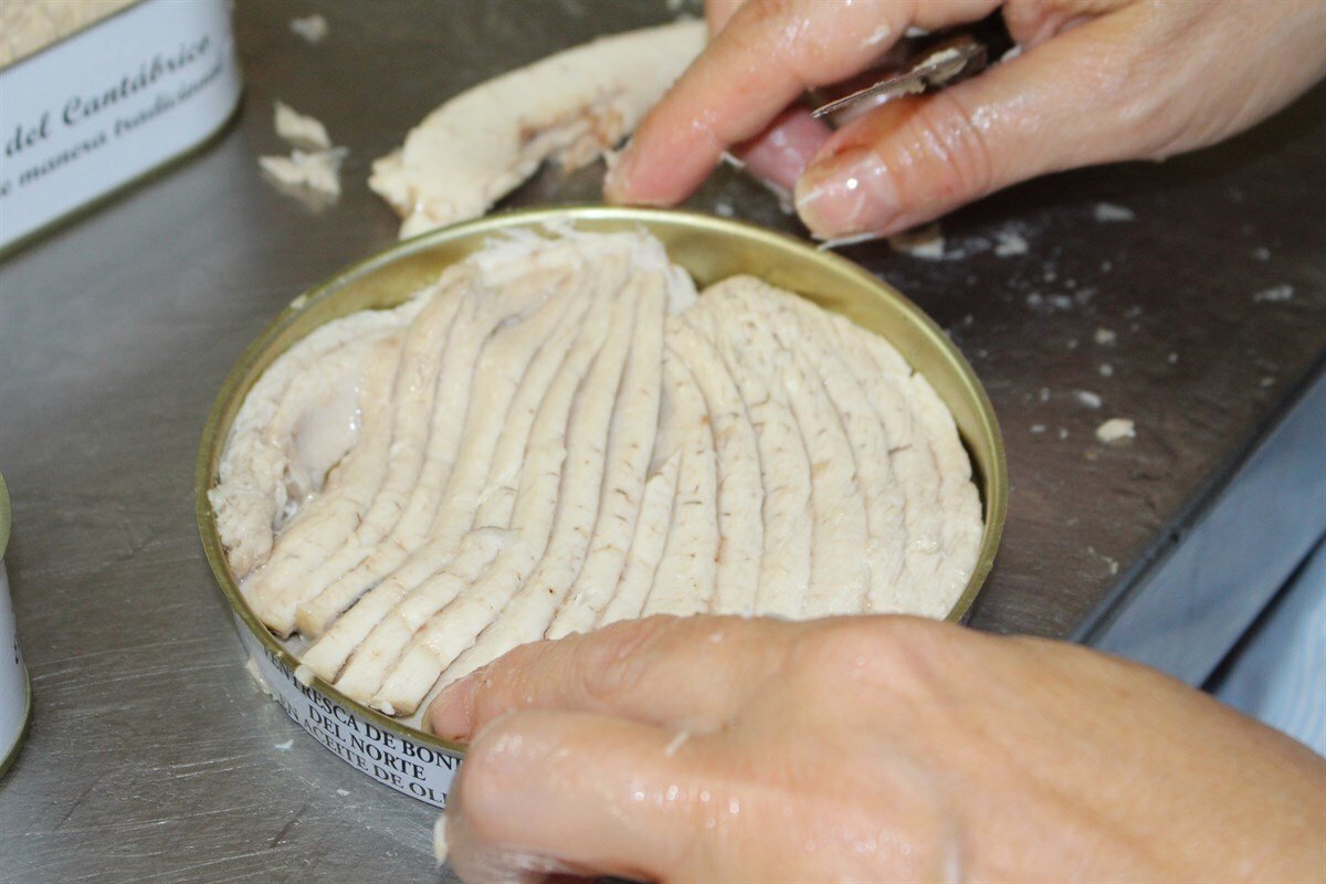 Envasan los bonitos que se pescan en el momento "óptimo", entre los meses de junio y septiembre. Compran los que llegan a la lonja por la mañana, y elaboran la cantidad que les permite garantizar un proceso artesanal y diario, para no congelar el producto: 15.000 kilos al año.