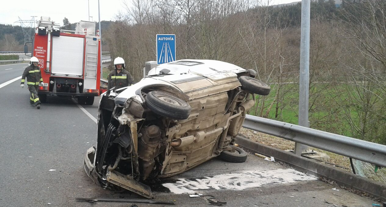 Un hombre resulta herido leve al volcar el vehículo en el que viajaba en la A8 a la altura de Virgen de la Peña