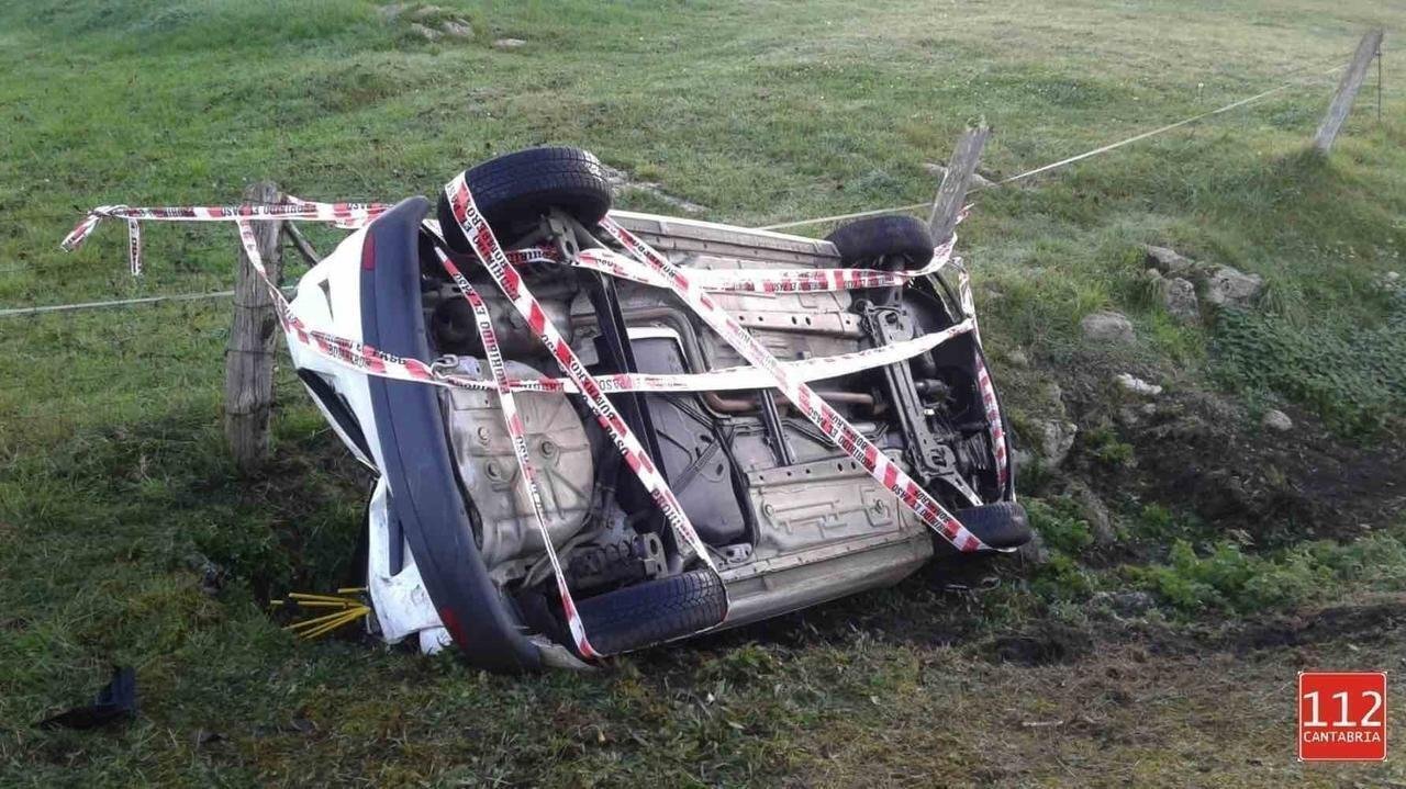Vuelca con su vehículo en Valdáliga y se va a casa caminando