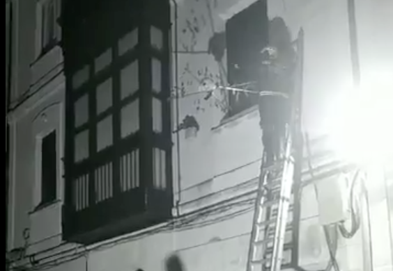 En un vídeo subido a la citada red social, se ve a bomberos del parque pejino en el lugar y a uno de ellos accediendo hasta el animal con ayuda de una escalera apoyada en el edificio donde se encontraba el tendal al que cayó.