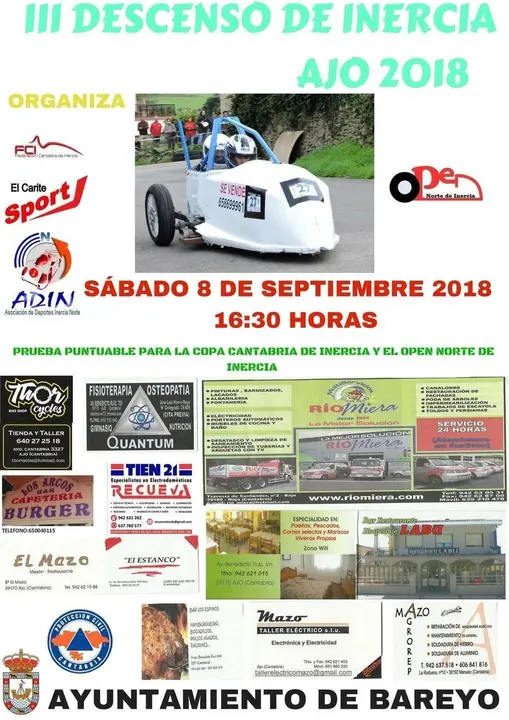 Según ha informado el Ayuntamiento de Bareyo en un comunicado, la prueba, que tendrá lugar a partir de las 16.30 horas, será puntuable para la Copa Cantabria de Inercia y Open Norte de Inercia, una cita que "trasciende el nivel regional de la primera" y engloba a las federaciones cántabra, vasca y asturiana.