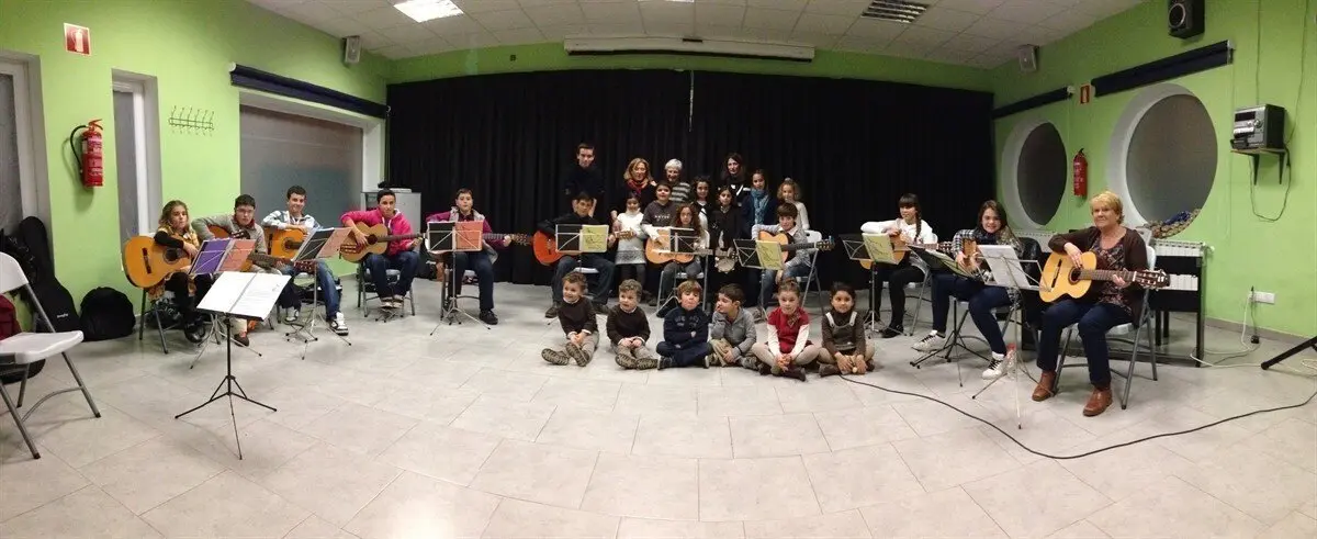 Igualmente, los alumnos pueden iniciarse o mejorar en los instrumentos colectivos, tales como la guitarra de acompañamiento, dulzaina, pandereta, tamboril y caja.