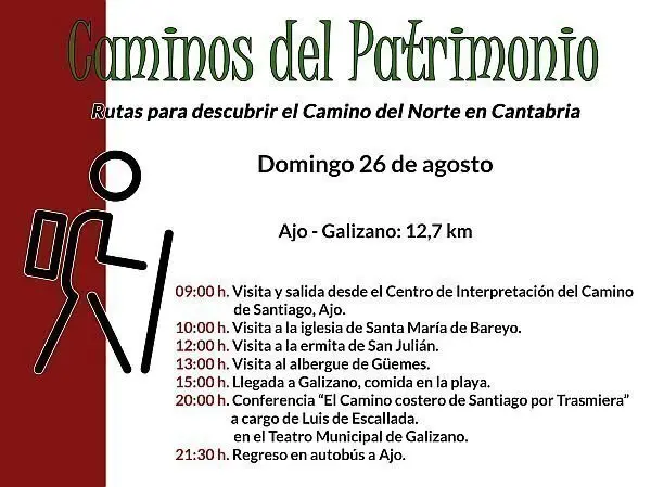 La actividad es gratuita y está promovida por el Gobierno de Cantabria y, para participar, será necesario inscribirse en el teléfono 667028016 o por mail escribiendo a caminonortecantabria@gmail.com. El número máximo de plazas se limita a 40 personas, informa el Ayuntamiento.