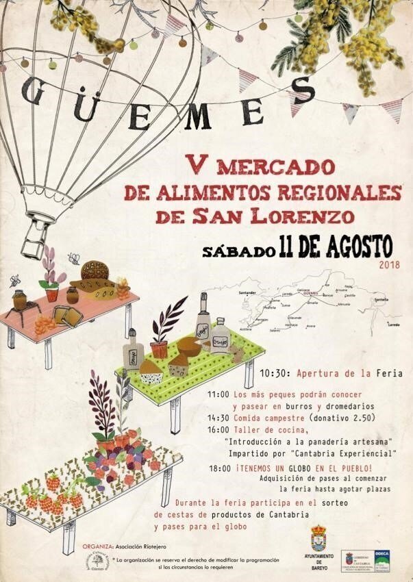 La localidad de Güemes acoge el próximo sábado, 11 de agosto, con motivo de la festividad de San Lorenzo, la quinta edición del Mercado de Alimentos Regionales.