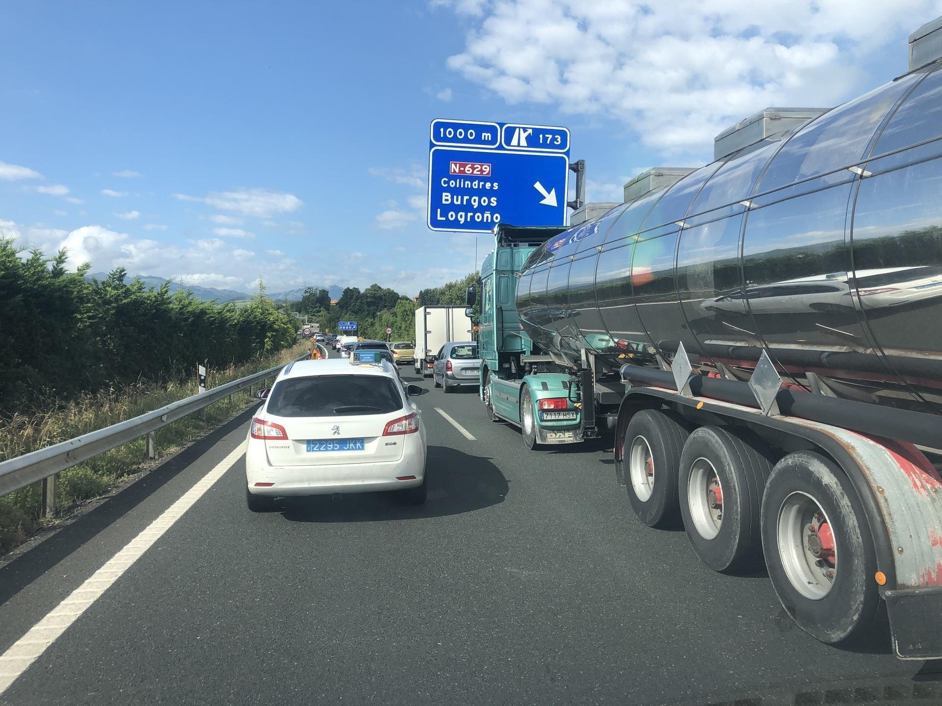 En concreto, hay retenciones desde el kilómetro 174 en Colindres hasta el 167 en Laredo en sentido Santander.