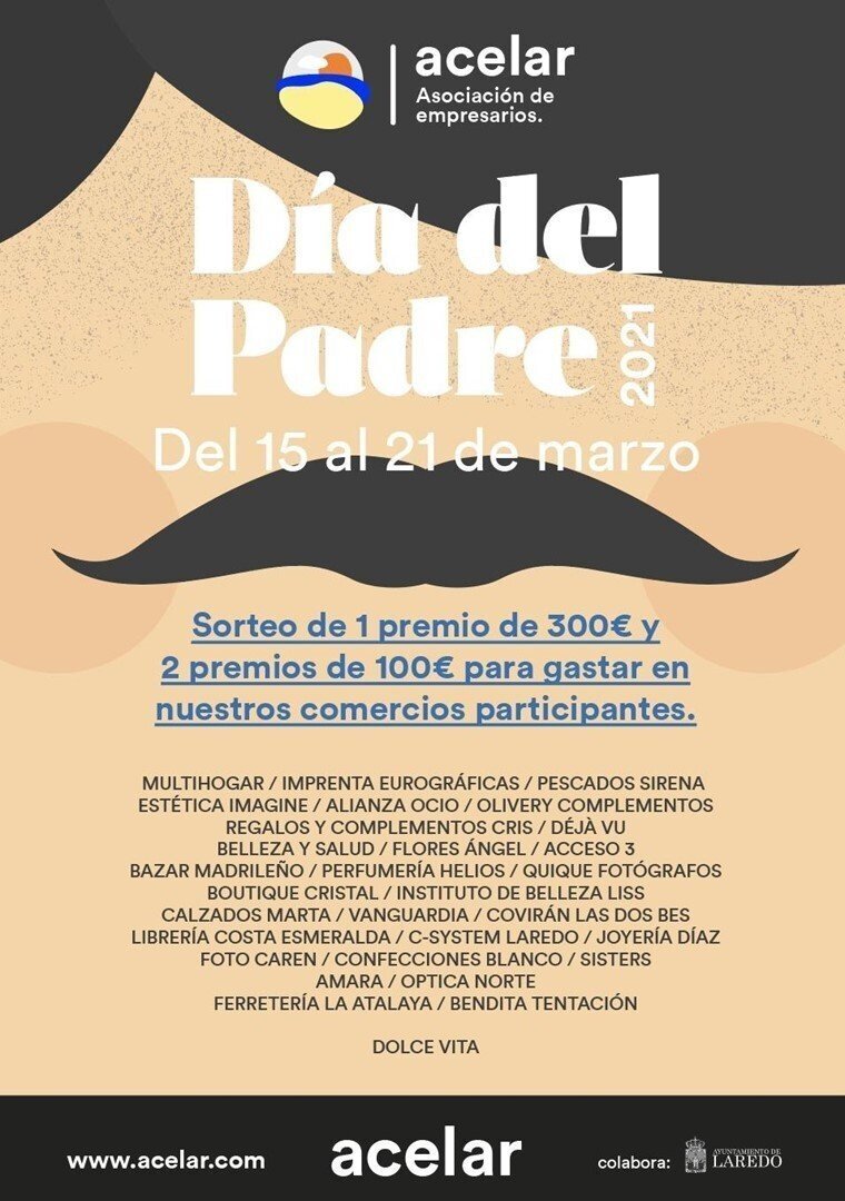 La Asociación de Empresarios de Laredo (ACELAR) realizará un sorteo con tres premios con motivo del Día del Padre, que se celebra el 19 de marzo.