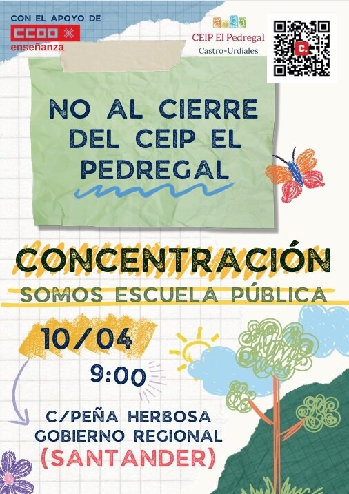 Con el lema 'No al cierre del CEIP El Pedregal', la primera será mañana las 9.00 horas en la calle Peña Herbosa, donde se encuentra la sede del Gobierno regional; y la del domingo, a las 12.30 en la plaza del Ayuntamiento de Castro Urdiales, donde ya se han concentrado el 30 de marzo y 6 de abril, además de participar en la manifestación de la educación pública en la capital la semana pasada.