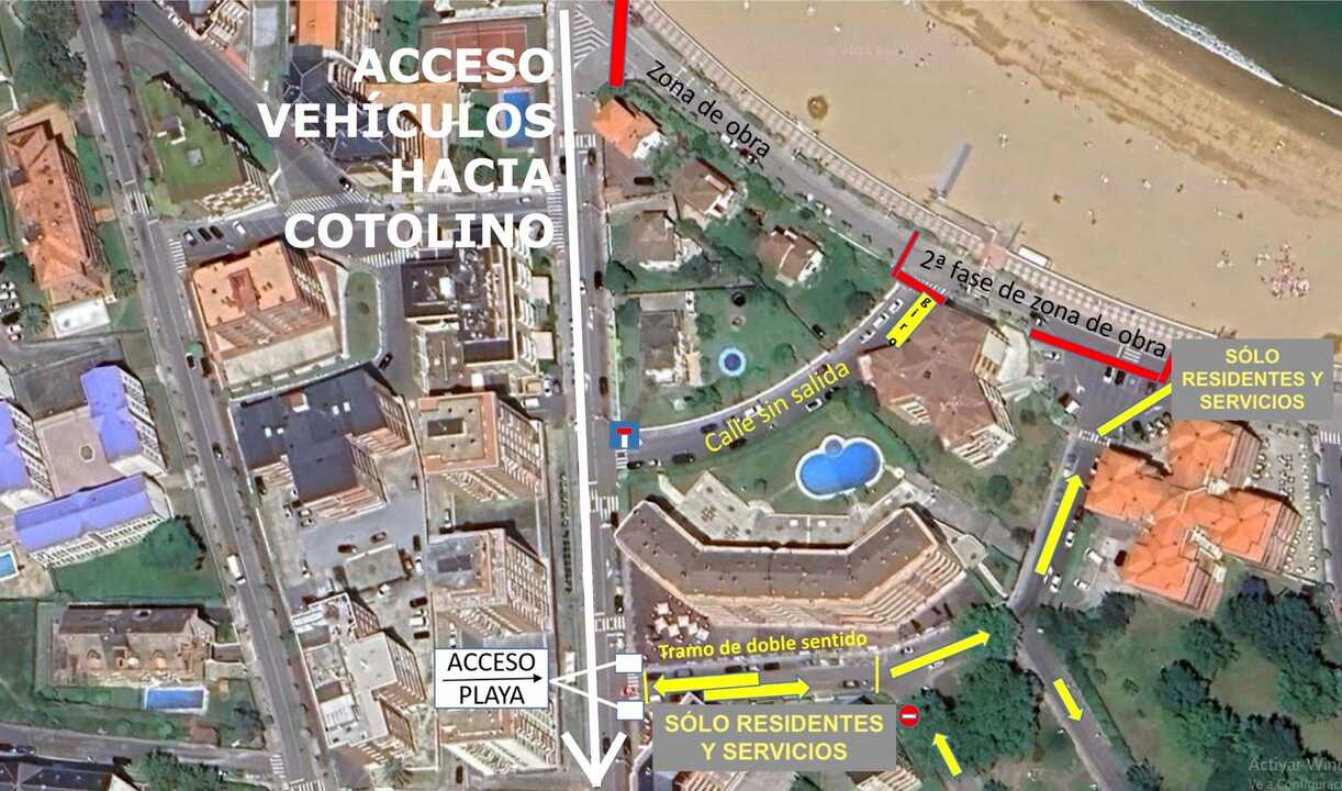 Para garantizar el acceso a la zona de la playa de Brazomar se habilitará el vial actual de salida a doble sentido, que será de acceso únicamente para residentes de la zona y servicios.