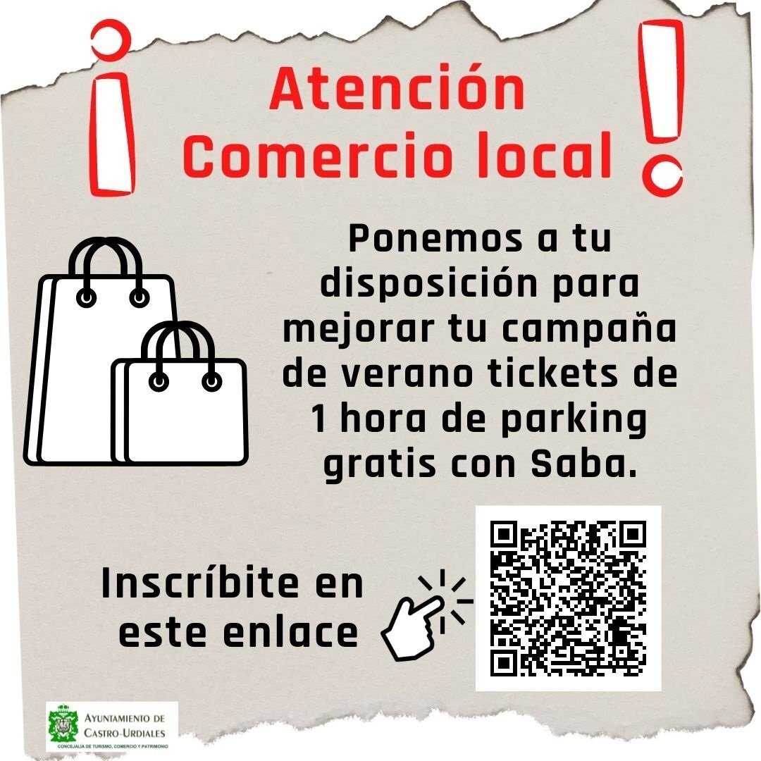 La Concejalía de Turismo, Comercio y Patrimonio de Castro Urdiales pondrá a disposición de los comercios de la localidad 1.650 horas en tickets de aparcamiento gratuito junto con el parking Saba por valor de una hora cada ticket.