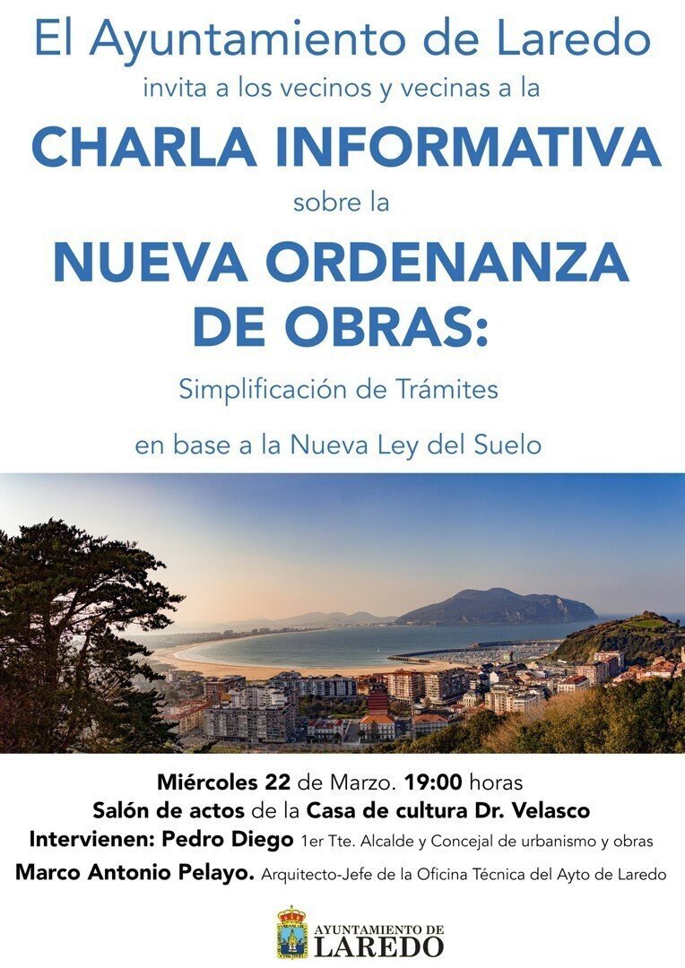 Será impartida por el primer teniente de alcalde y concejal de Urbanismo y Obras, Pedro Diego; y por el arquitecto Marco Antonio Pelayo, jefe de la Oficina Técnica del Ayuntamiento de Laredo.