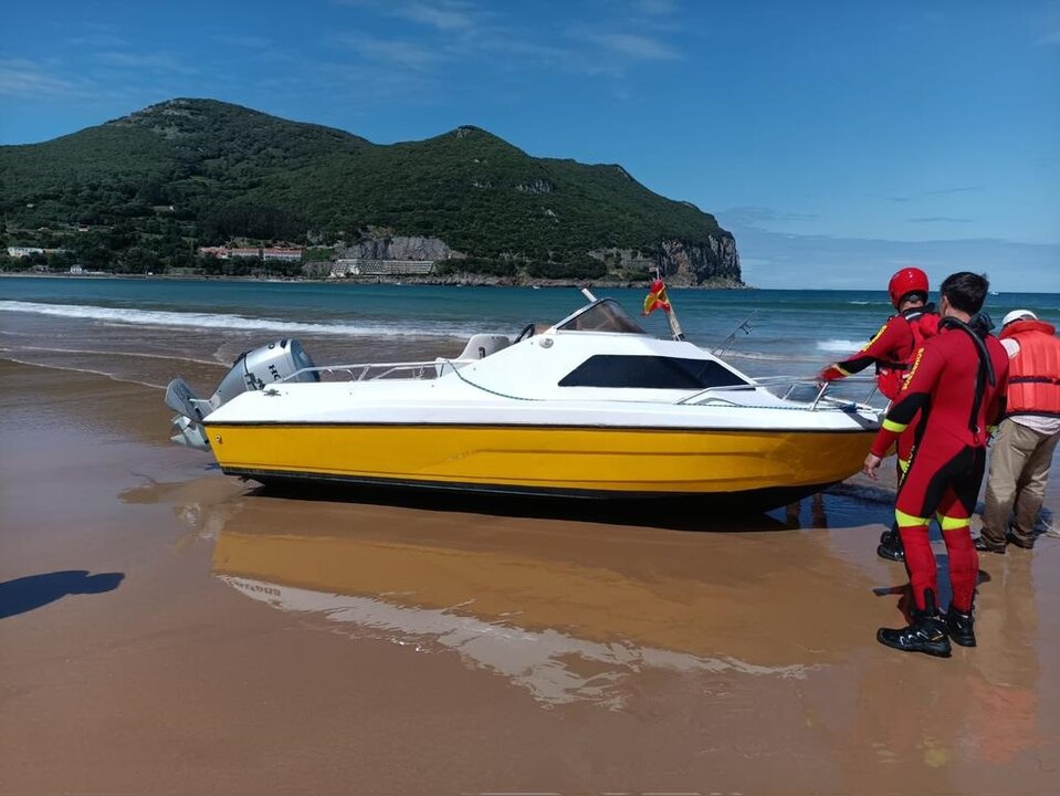 Una barca con un ocupante a bordo ha estado a punto de volcar este jueves cerca de la orilla de la playa de Laredo debido al oleaje. Finalmente, ha quedado encallada en la arena y la persona fuera de peligro.