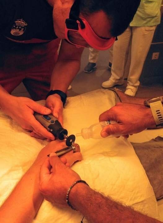 Efectivos de los bomberos autonómicos se desplazaron al hospital comarcal a requerimiento del personal sanitario para proceder a la retirada de un anillo de acero a un paciente que se le había atascado en su dedo.
